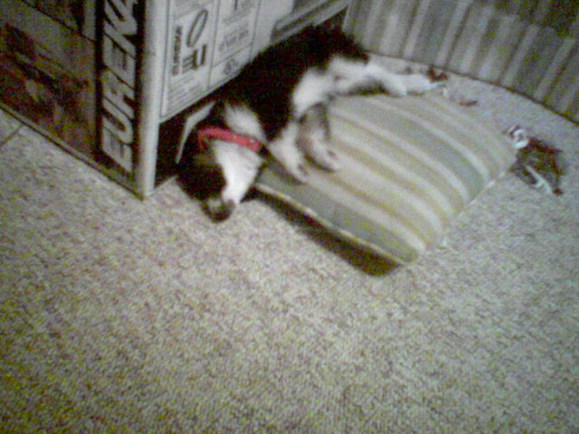 Also, she doesn't like sleeping alone right now, which is a pain. Each night she's stayed in her room longer and longer with out whining so much that I can't sleep, but so far I've had to let her sleep on my bed, just so I could sleep. I don't really like teaching her to sleep in bed with me, so hopefully she gets better about being alone at night or at learns to sleep on the floor in my room. During the day I'm guessing she whines too, but I'm not there trying to sleep!